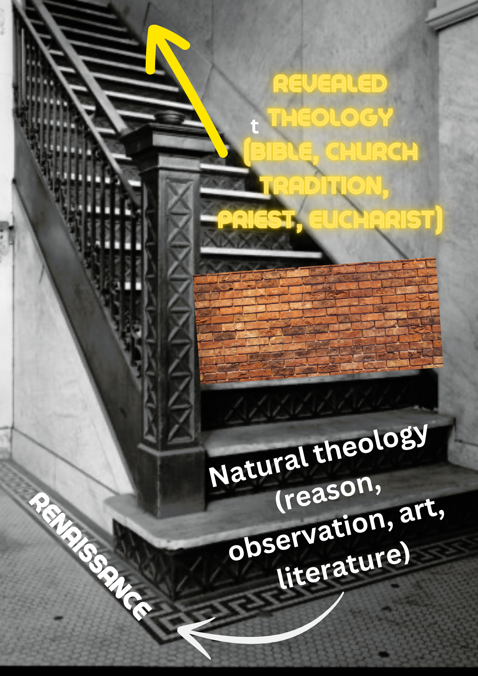 The Catholic theologian Thomas Aquinas (1225-1274) was a heavyweight of Roman Catholic Doctrine. Thwaites argues that Aquinas reinforced the split universe. First, he followed the Greek philosopher Aristotle in saying that human reason and observation would enable us to understand the world around us. This he called natural theology. So good so far. This was about using our God given abilities and intelligence to make sense of the creation realities all around us. However, the Platonic virus was at work and the wall reinforced. Behind metaphysical barbed wire and a towering wall Aquinas defined revealed theology. This was the realm of the Bible, church traditions and the gateway to the removed spiritual realm. Guarding over this exclusive gateway with the Latin mass inscribed above the gateway were the priestly philosopher-kings.